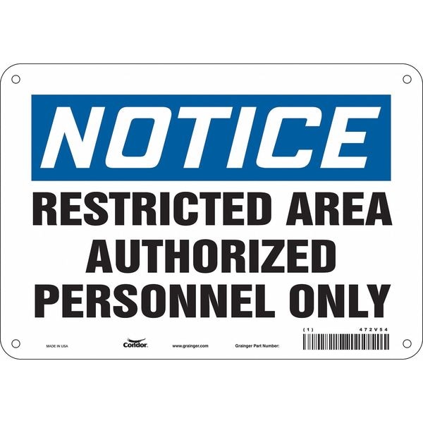 Safety Sign, Vertical Rectangle, Number of Printed Sides 1, English, Sign Format Traditional OSHA, Sign Legend Restricted Area Authorized Personnel Only, Sign Legend Background Color White, Sign Legend Style Text