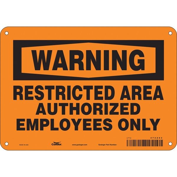 Safety Sign, Vertical Rectangle, Number of Printed Sides 1, English, Sign Format Traditional OSHA, Sign Legend Restricted Area Authorized Employees Only, Sign Legend Background Color Orange, Sign Legend Style Text