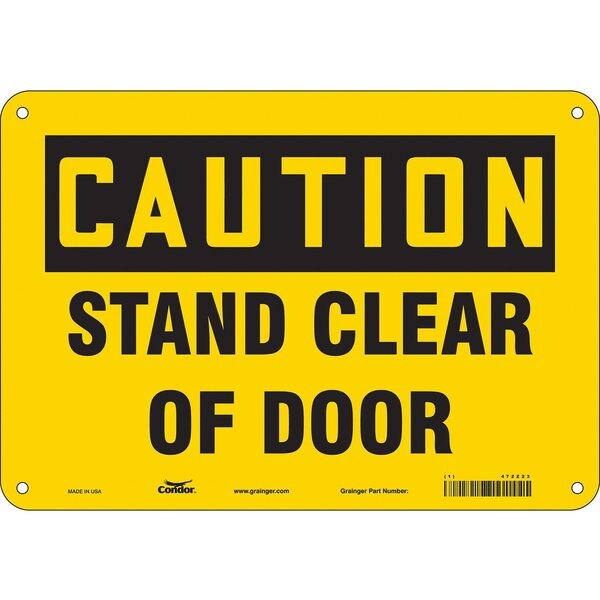 Safety Sign, Vertical Rectangle, Number of Printed Sides 1, English, Sign Format Traditional OSHA, Sign Legend Stand Clear Of Door, Sign Legend Background Color Yellow, Sign Legend Style Text