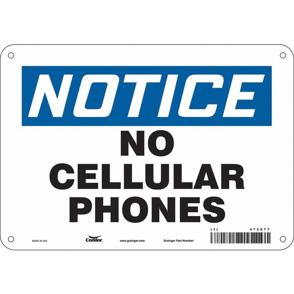 Safety Sign, Vertical Rectangle, Number of Printed Sides 1, English, Sign Format Traditional OSHA, Sign Legend No Cellular Phones, Sign Legend Background Color White, Sign Legend Style Symbol and Text