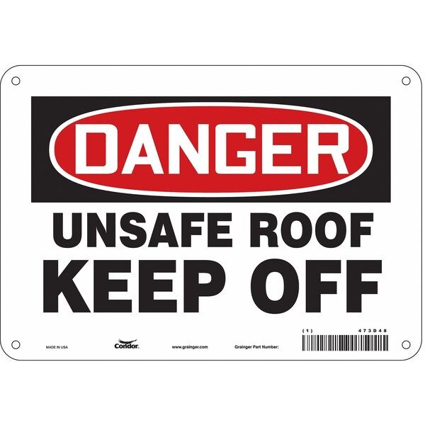 Safety Sign, Vertical Rectangle, Number of Printed Sides 1, English, Sign Format Traditional OSHA, Sign Legend Unsafe Roof Keep Off, Sign Legend Background Color White, Sign Legend Style Text