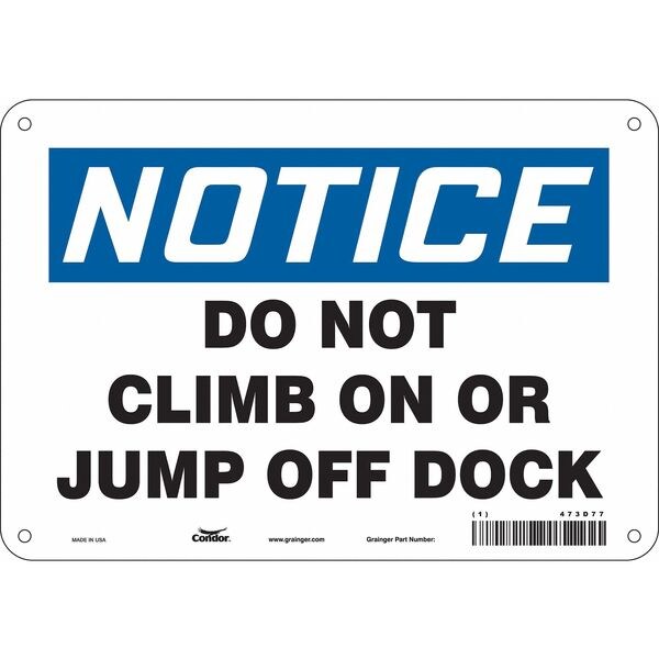 Safety Sign, Vertical Rectangle, Number of Printed Sides 1, English, Sign Format Traditional OSHA, Sign Legend Do Not Climb On Or Jump Off Dock, Sign Legend Background Color White, Sign Legend Style Text