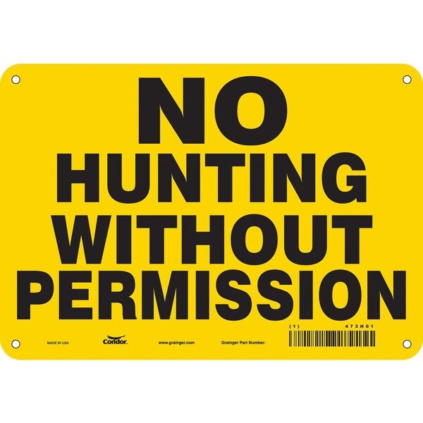 Safety Sign, Vertical Rectangle, Number of Printed Sides 1, English, Sign Format Other Format, Sign Legend No Hunting Without Permission, Sign Legend Background Color Yellow, Sign Legend Style Text