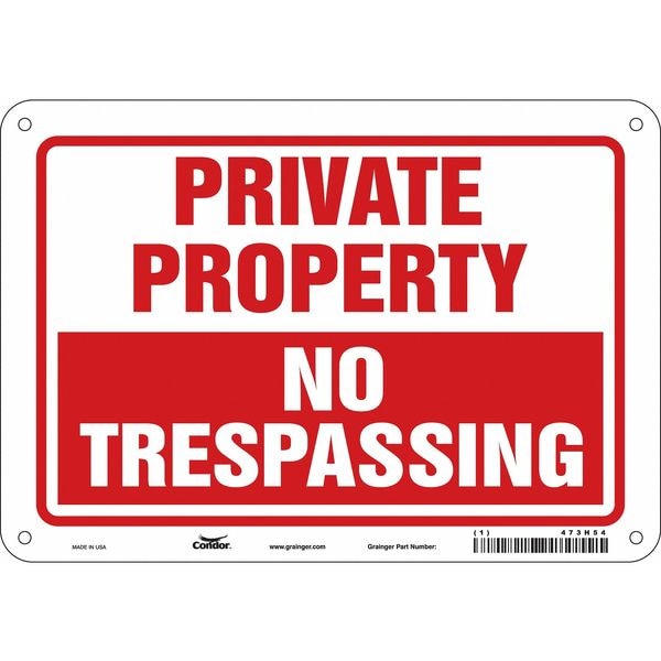 Safety Sign, Vertical Rectangle, Number of Printed Sides 1, English, Sign Format Other Format, Sign Legend No Trespassing, Sign Legend Background Color Red, White, Sign Legend Style Text