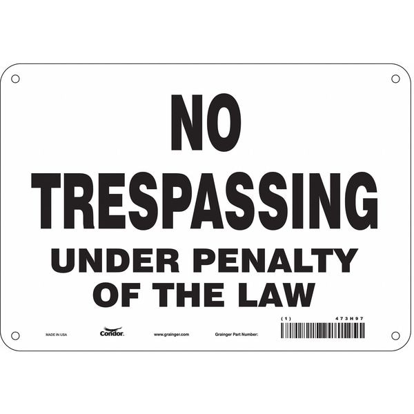 Safety Sign, Vertical Rectangle, Number of Printed Sides 1, English, Sign Format Other Format, Sign Legend No Trespassing Under Penalty Of The Law, Sign Legend Background Color White, Sign Legend Style Text