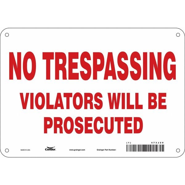 Safety Sign, Vertical Rectangle, Number of Printed Sides 1, English, Sign Format Other Format, Sign Legend No Trespassing Violators Will Be Prosecuted, Sign Legend Background Color White, Sign Legend Style Text