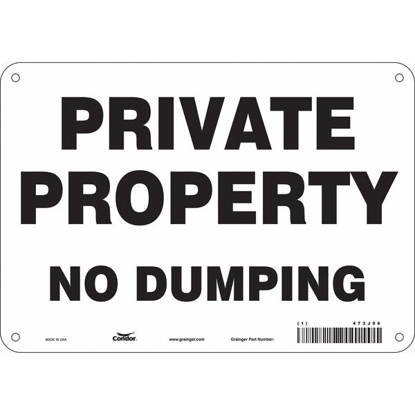 Safety Sign, Vertical Rectangle, Number of Printed Sides 1, English, Sign Format Other Format, Sign Legend Private Property No Dumping, Sign Legend Background Color White, Sign Legend Style Text