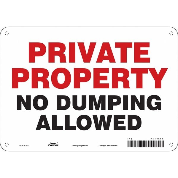 Safety Sign, Vertical Rectangle, Number of Printed Sides 1, English, Sign Format Other Format, Sign Legend Private Property No Dumping Allowed, Sign Legend Background Color White, Sign Legend Style Text