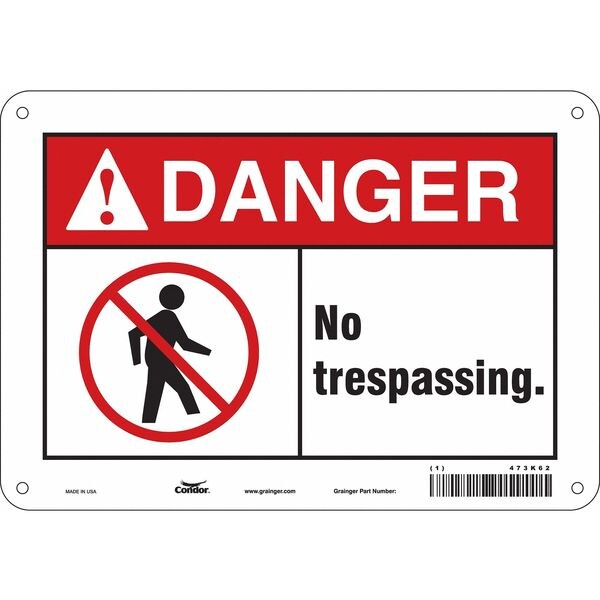 Safety Sign, Vertical Rectangle, Number of Printed Sides 1, English, Sign Format ANSI/OSHA Format, Sign Legend No Trespassing., Sign Legend Background Color White, Sign Legend Style Symbol and Text