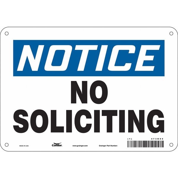 Safety Sign, Vertical Rectangle, Number of Printed Sides 1, English, Sign Format Traditional OSHA, Sign Legend No Soliciting, Sign Legend Background Color White, Sign Legend Style Text