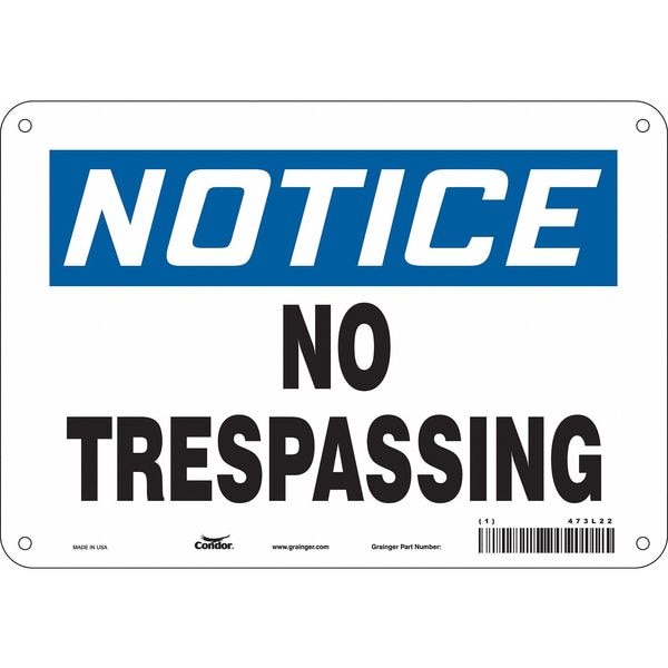 Safety Sign, Vertical Rectangle, Number of Printed Sides 1, English, Sign Format Traditional OSHA, Sign Legend No Trespassing, Sign Legend Background Color White, Sign Legend Style Text