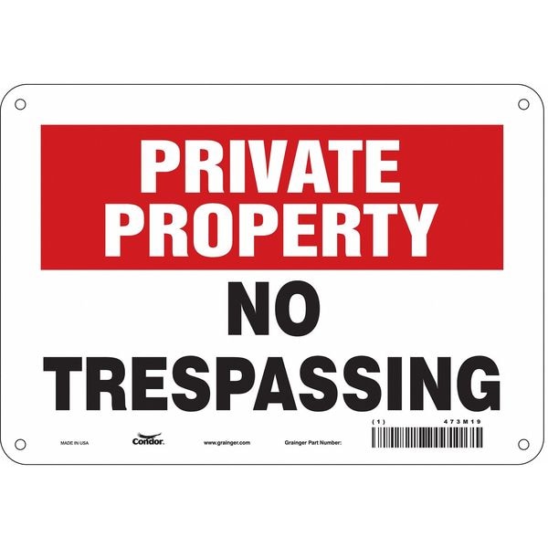 Safety Sign, Vertical Rectangle, Number of Printed Sides 1, English, Sign Format Other Format, Sign Legend No Trespassing, Sign Legend Background Color Red, White, Sign Legend Style Text