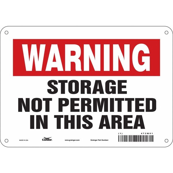 Safety Sign, Vertical Rectangle, Number of Printed Sides 1, English, Sign Legend Storage Not Permitted In This Area, Sign Legend Background Color Red, White, Sign Legend Style Text