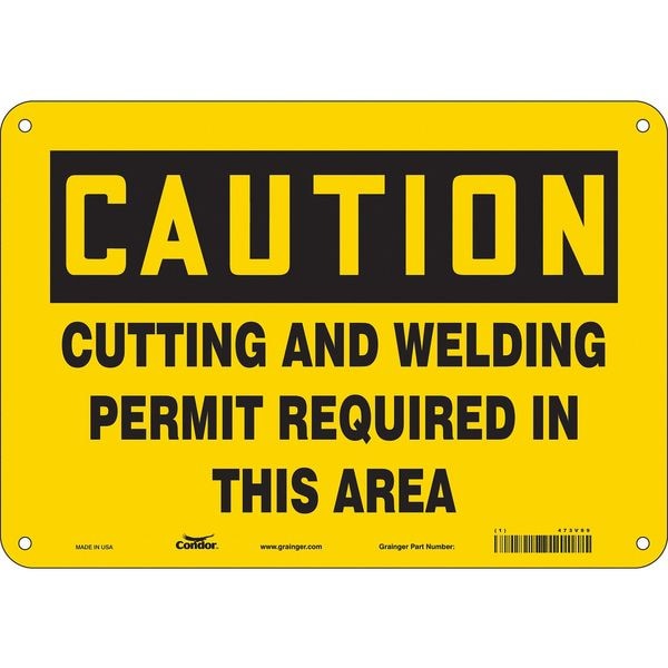 Safety Sign, Vertical Rectangle, Number of Printed Sides 1, English, Sign Format Traditional OSHA, Sign Legend Cutting And Welding Permit Required In This Area, Sign Legend Background Color Yellow, Sign Legend Style Text