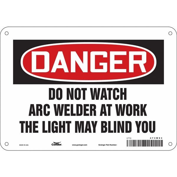 Safety Sign, Vertical Rectangle, Number of Printed Sides 1, English, Sign Format Traditional OSHA, Sign Legend Do Not Watch Arc Welder At Work The Light Will Blind You, Sign Legend Background Color White, Sign Legend Style Text