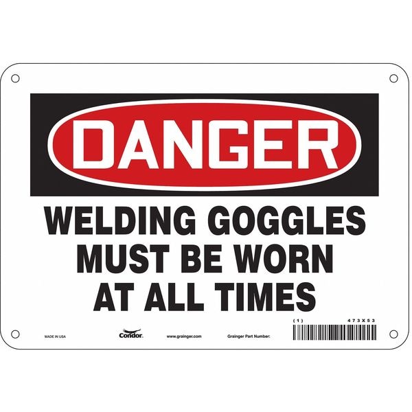 Safety Sign, Vertical Rectangle, Number of Printed Sides 1, English, Sign Format Traditional OSHA, Sign Legend Welding Goggles Must Be Worn At All Times, Sign Legend Background Color White, Sign Legend Style Text