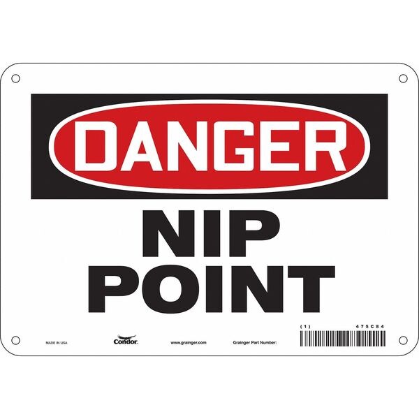 Safety Sign, Vertical Rectangle, Number of Printed Sides 1, English, Sign Format Traditional OSHA, Sign Legend Nip Point, Sign Legend Background Color White, Sign Legend Style Text