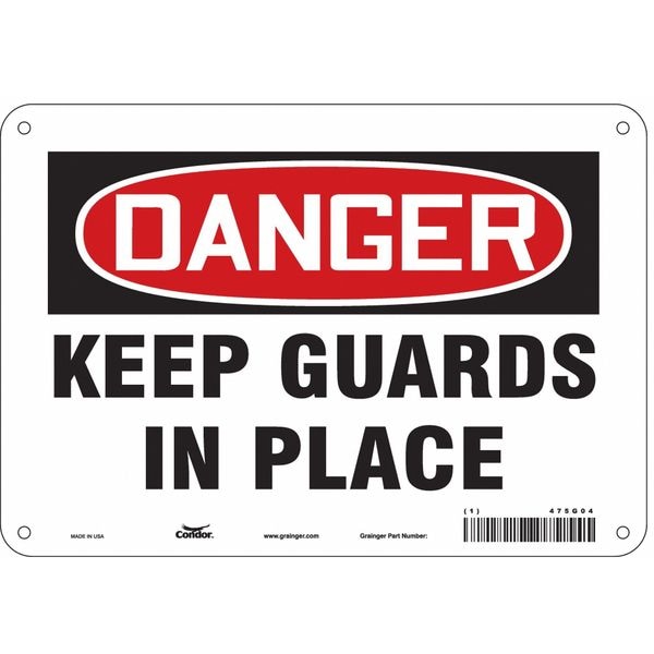 Safety Sign, Vertical Rectangle, Number of Printed Sides 1, English, Sign Format Traditional OSHA, Sign Legend Keep Guards In Place, Sign Legend Background Color White, Sign Legend Style Text