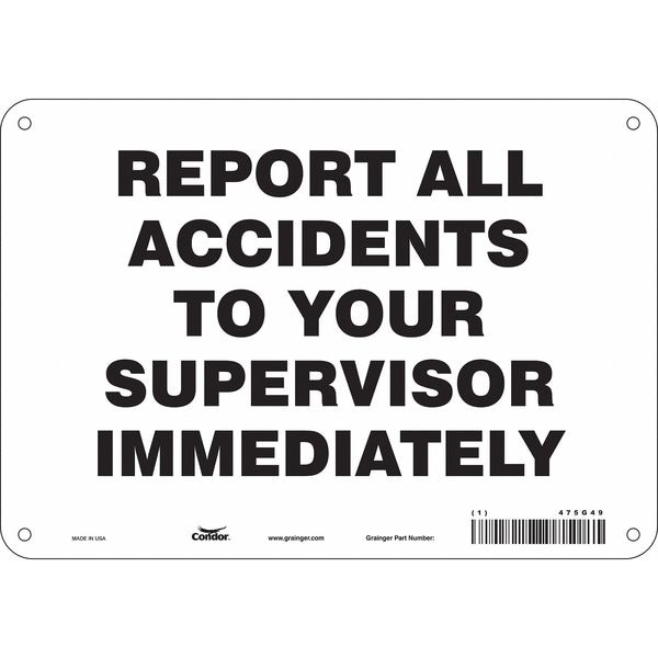 Safety Sign, Vertical Rectangle, Number of Printed Sides 1, English, Sign Format Other Format, Sign Legend Report All Accidents To Your Supervisor Immediately, Sign Legend Background Color White, Sign Legend Style Text