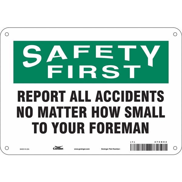 Safety Sign, Vertical Rectangle, Number of Printed Sides 1, English, Sign Format Traditional OSHA, Sign Legend Report All Accidents No Matter How Small To Your Foreman, Sign Legend Background Color White, Sign Legend Style Text