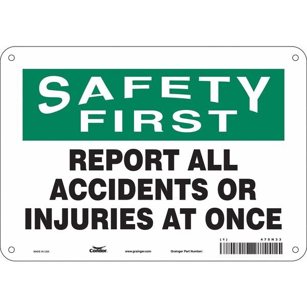 Safety Sign, Vertical Rectangle, Number of Printed Sides 1, English, Sign Format Traditional OSHA, Sign Legend Report All Accidents Or Injuries At Once, Sign Legend Background Color White, Sign Legend Style Text