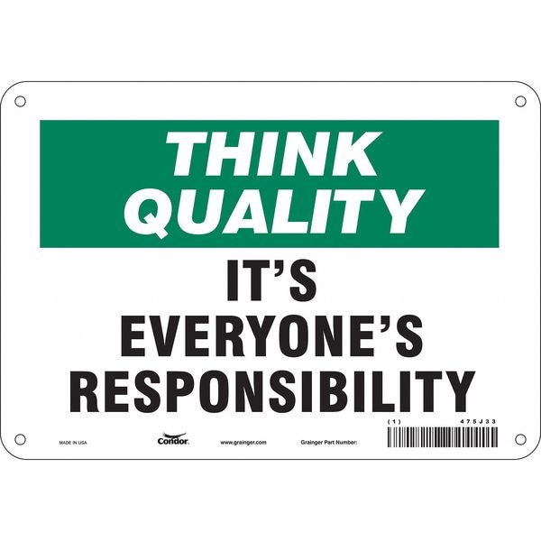 Safety Sign, 7 in Height, 10 in Width, Polyethylene, Vertical Rectangle, English, 475J33