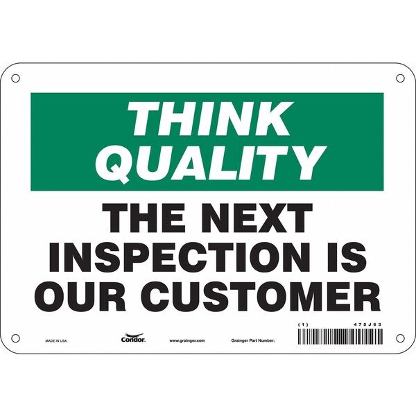 Safety Sign, Vertical Rectangle, Number of Printed Sides 1, English, Sign Format Other Format, Sign Legend The Next Inspection Is Our Customer, Sign Legend Background Color Green, White, Sign Legend Style Text