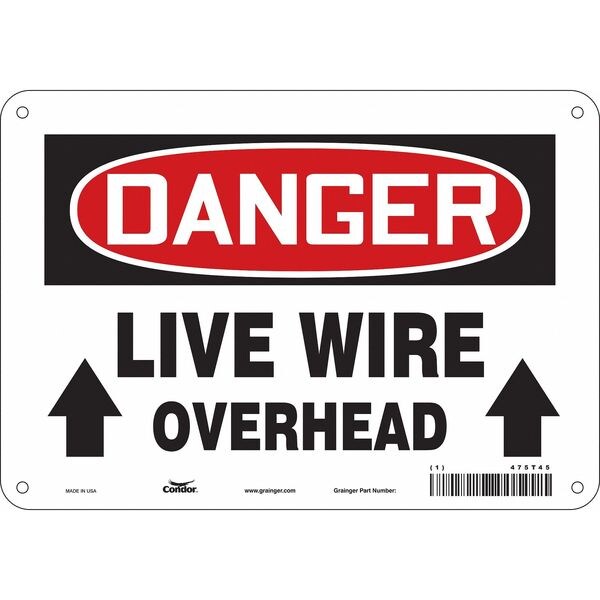 Safety Sign, Vertical Rectangle, Number of Printed Sides 1, English, Sign Format Traditional OSHA, Sign Legend Live Wire Overhead, Sign Legend Background Color White, Sign Legend Style Symbol and Text