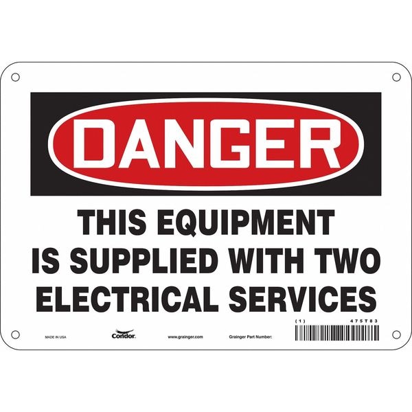 Safety Sign, Vertical Rectangle, Number of Printed Sides 1, English, Sign Format Traditional OSHA, Sign Legend This Equipment Is Supplied With Two Electrical Services, Sign Legend Background Color White, Sign Legend Style Text