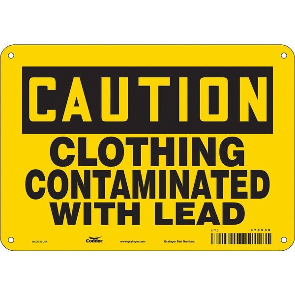 Safety Sign, Vertical Rectangle, Number of Printed Sides 1, English, Sign Format Traditional OSHA, Sign Legend Clothing Contaminated With Lead, Sign Legend Background Color Yellow, Sign Legend Style Text
