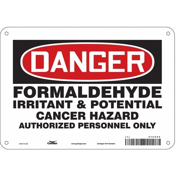 Safety Sign, Vertical Rectangle, Number of Printed Sides 1, English, Sign Format Traditional OSHA, Sign Legend Formaldehyde Irritant & Potential Cancer Hazard Authorized Personnel Only, Sign Legend Background Color White, Sign Legend Style Text