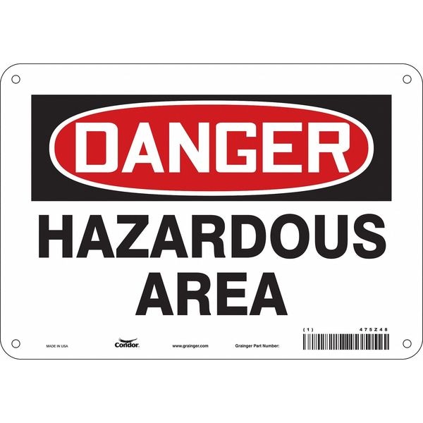 Safety Sign, Vertical Rectangle, Number of Printed Sides 1, English, Sign Format Traditional OSHA, Sign Legend Hazardous Area, Sign Legend Background Color White, Sign Legend Style Text