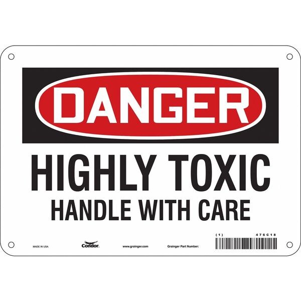 Safety Sign, Vertical Rectangle, Number of Printed Sides 1, English, Sign Format Traditional OSHA, Sign Legend Highly Toxic Handle With Care, Sign Legend Background Color White, Sign Legend Style Text