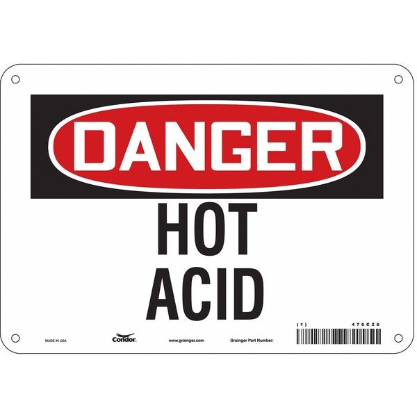 Safety Sign, Vertical Rectangle, Number of Printed Sides 1, English, Sign Format Traditional OSHA, Sign Legend Hot Acid, Sign Legend Background Color White, Sign Legend Style Text