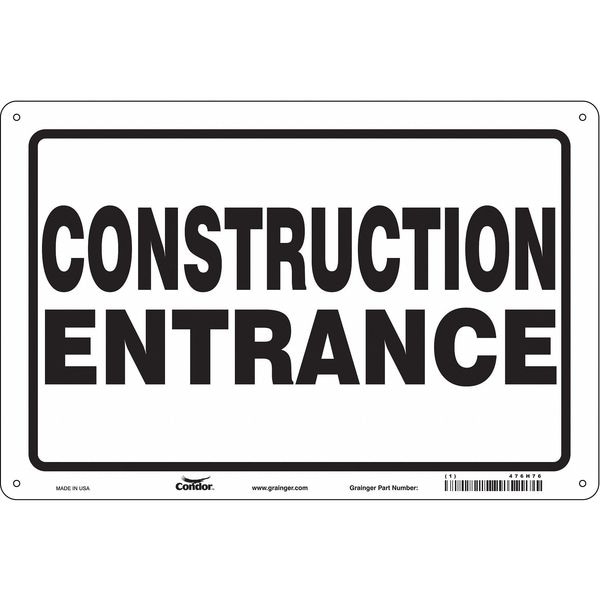 Safety Sign, Vertical Rectangle, Number of Printed Sides 1, English, Sign Format Other Format, Sign Legend Construction Entrance, Sign Legend Background Color White, Sign Legend Style Text