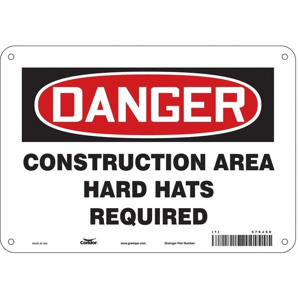 Safety Sign, Vertical Rectangle, Number of Printed Sides 1, English, Sign Format Traditional OSHA, Sign Legend Construction Area Hard Hats Required, Sign Legend Background Color White, Sign Legend Style Text