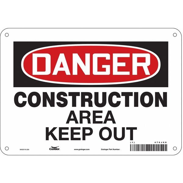 Safety Sign, Vertical Rectangle, Number of Printed Sides 1, English, Sign Format Traditional OSHA, Sign Legend Construction Area Keep Out, Sign Legend Background Color White, Sign Legend Style Text