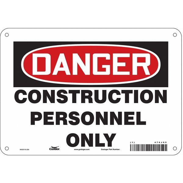 Safety Sign, Vertical Rectangle, Number of Printed Sides 1, English, Sign Format Traditional OSHA, Sign Legend Construction Personnel Only, Sign Legend Background Color White, Sign Legend Style Text