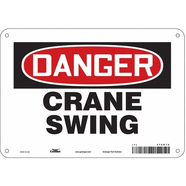 Safety Sign, Vertical Rectangle, Number of Printed Sides 1, English, Sign Format Traditional OSHA, Sign Legend Crane Swing, Sign Legend Background Color White, Sign Legend Style Text