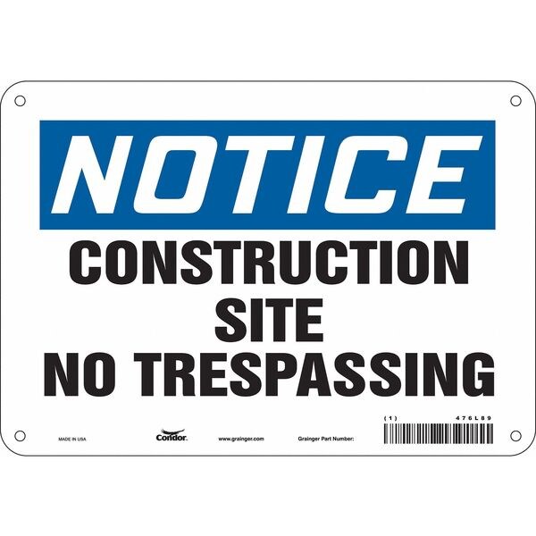 Safety Sign, Vertical Rectangle, Number of Printed Sides 1, English, Sign Format Traditional OSHA, Sign Legend Construction Site No Trespassing, Sign Legend Background Color White, Sign Legend Style Text