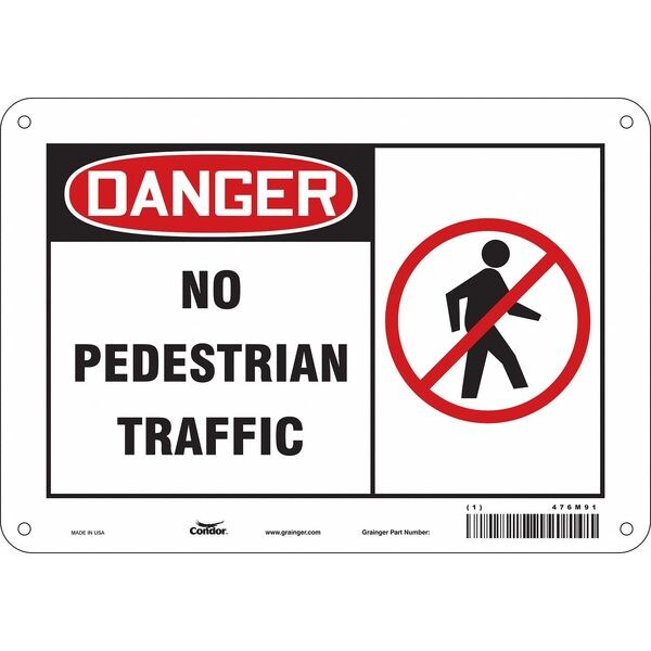 Safety Sign, Vertical Rectangle, Number of Printed Sides 1, English, Sign Format Traditional OSHA, Sign Legend No Pedestrian Traffic, Sign Legend Background Color White, Sign Legend Style Symbol and Text