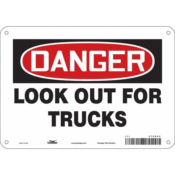 Safety Sign, Vertical Rectangle, Number of Printed Sides 1, English, Sign Format Traditional OSHA, Sign Legend Look Out For Trucks, Sign Legend Background Color White, Sign Legend Style Text