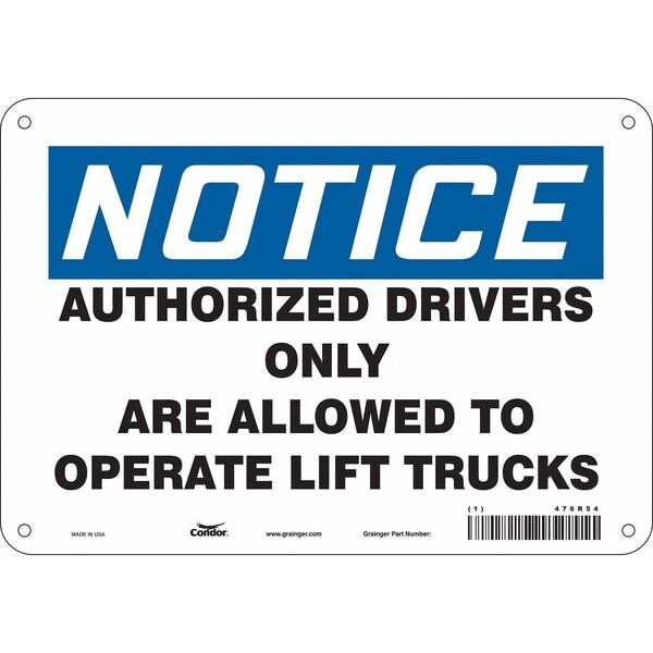 Safety Sign, Vertical Rectangle, Number of Printed Sides 1, English, Sign Format Traditional OSHA, Sign Legend Authorized Drivers Only Are Allowed To Operate Lift Trucks, Sign Legend Background Color White, Sign Legend Style Text