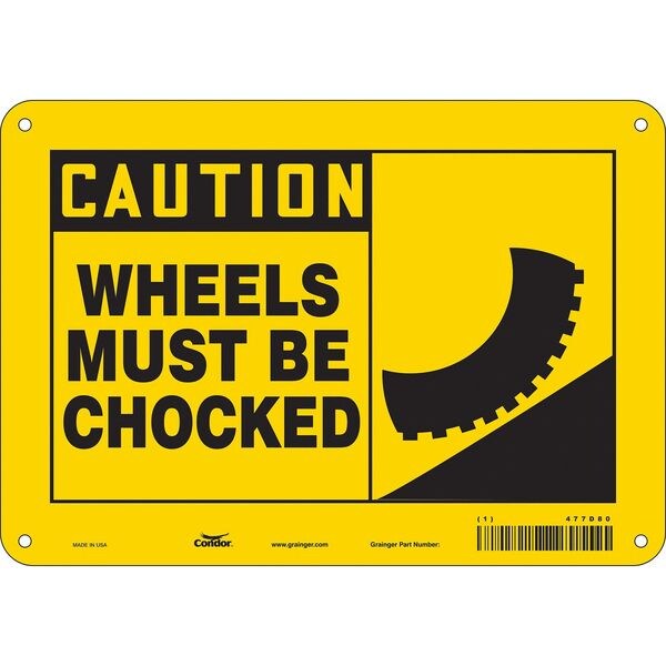 Safety Sign, Vertical Rectangle, Number of Printed Sides 1, English, Sign Format Traditional OSHA, Sign Legend Wheels Must Be Chocked, Sign Legend Background Color Yellow, Sign Legend Style Symbol and Text