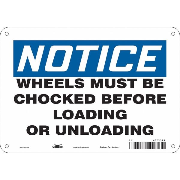 Safety Sign, Vertical Rectangle, Number of Printed Sides 1, English, Sign Format Traditional OSHA, Sign Legend Wheels Must Be Chocked Before Loading Or Unloading, Sign Legend Background Color White, Sign Legend Style Text