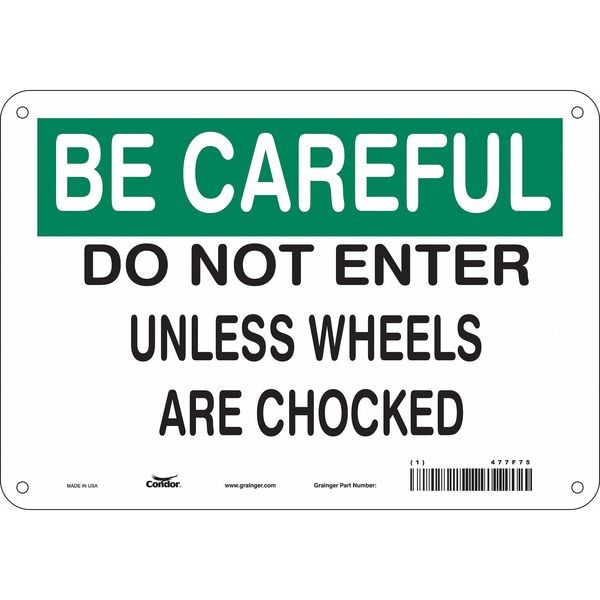 Safety Sign, Vertical Rectangle, Number of Printed Sides 1, English, Sign Format Other Format, Sign Legend Do Not Enter Unless Wheels Are Chocked, Sign Legend Background Color Green, White, Sign Legend Style Text