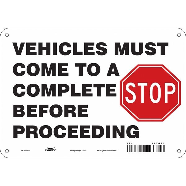 Safety Sign, Vertical Rectangle, Number of Printed Sides 1, English, Sign Format Other Format, Sign Legend Vehicles Must Come To A Complete Stop Before Proceeding, Sign Legend Background Color White, Sign Legend Style Symbol and Text