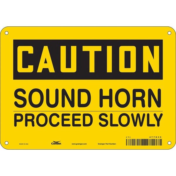 Safety Sign, Vertical Rectangle, Number of Printed Sides 1, English, Sign Format Traditional OSHA, Sign Legend Sound Horn Proceed Slowly, Sign Legend Background Color Yellow, Sign Legend Style Text