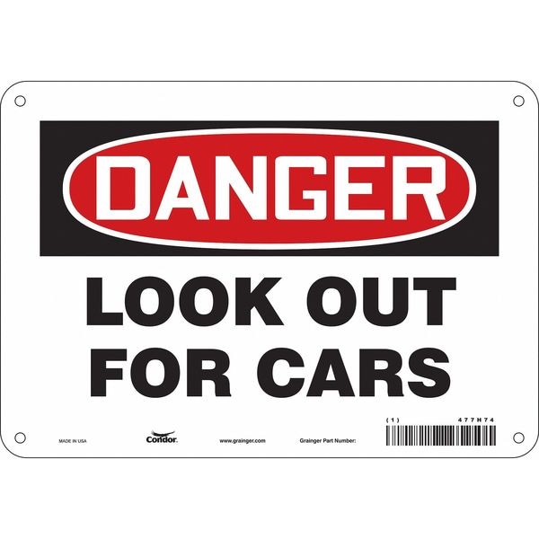 Safety Sign, Vertical Rectangle, Number of Printed Sides 1, English, Sign Format Traditional OSHA, Sign Legend Look Out For Cars, Sign Legend Background Color White, Sign Legend Style Text