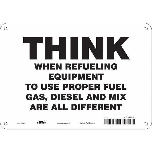 Safety Sign, Vertical Rectangle, Number of Printed Sides 1, English, Sign Format Other Format, Sign Legend Think When Refueling Equipment To Use Proper Fuel Gas, Diesel And Mix Are All Different, Sign Legend Background Color White, Sign Legend Style Text